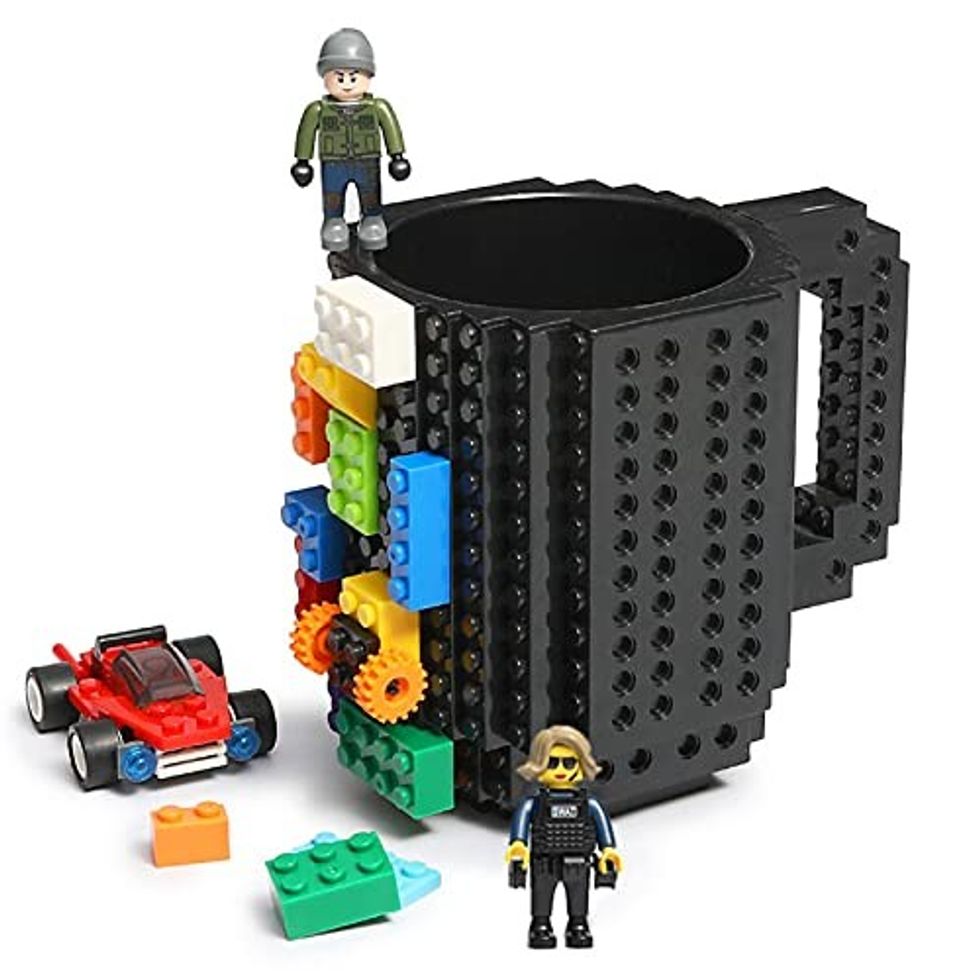 The Lego mug is a playful and functional way to enjoy your favorite hot beverage. This mug is designed with a building surface on its exterior, allowing you to attach Lego bricks and create unique designs. It's perfect for Lego enthusiasts or anyone who wants to add a touch of creativity to their coffee break. Keep your hands busy and your mind engaged while you sip.