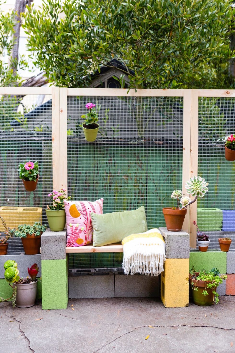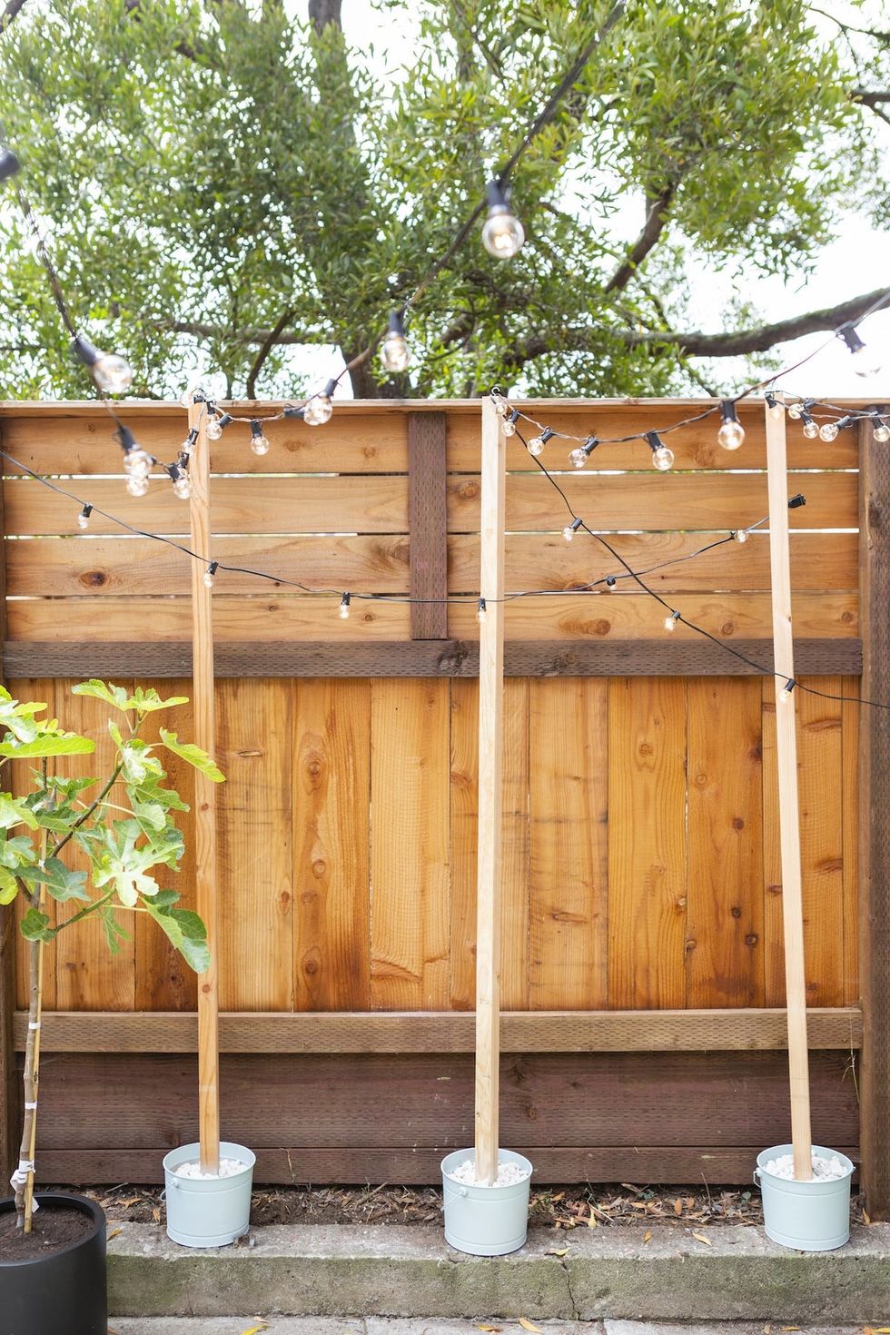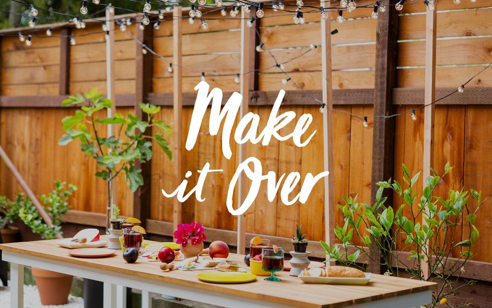 The three zones — a new fence with seating, a fire pit lounge area, and a dining space — and accompanying DIYs really upgraded the yard. The multi-functional fence served so many purposes, including covering up the old fence, adding more seating, and bringing vertical storage for plants. With the fire pit lounge and outdoor pillows, we created a cozy spot for s’mores roasting and rosé sipping. The pièce de résistance had to be the string light canopy that *literally* elevated the dining decor and upped the ambiance for dinner parties. If you're looking to make some similar upgrades to your patio or yard, see the step-by-steps below and then check out all the shoppable goodies.