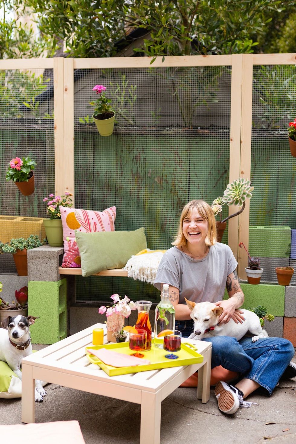 Every city gal dreams of having a tiny bit of outdoor space, even if it's just a sliver of concrete or a small patch of grass. Brit + Co's Creative Producer Cassidy Miller was blessed with a yard next to her cute San Francisco cottage but needed some help making the most of the narrow 250-square-foot patio. After hearing her (and her two pups') needs, like additional seating, a new fence, and a pretty space for dinner parties, we couldn't wait to get our crafty hands on it. Check out the transformation, must-have products, and DIYs below.