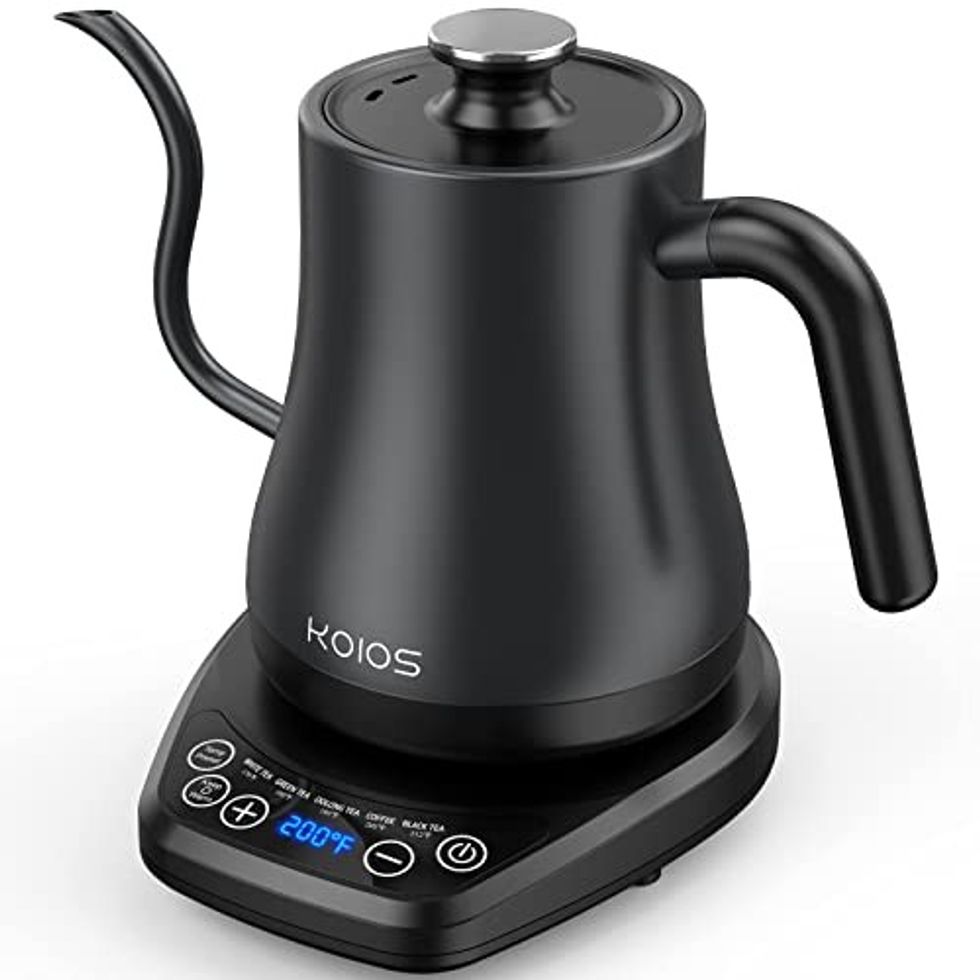 The electric KOIOS gooseneck kettle is a dream come true for the pour-over aficionados or tea lovers. It's all about precision here, with five preset temperatures to fine-tune that perfect brew. Need your water to wait for you? The 'keep warm' setting is ready to hold that second cup just right. And let's not forget the smart features: a precise ±1℉ temperature control, a handy 2-hour temperature hold, auto shut-off, and essential boil-dry protection.