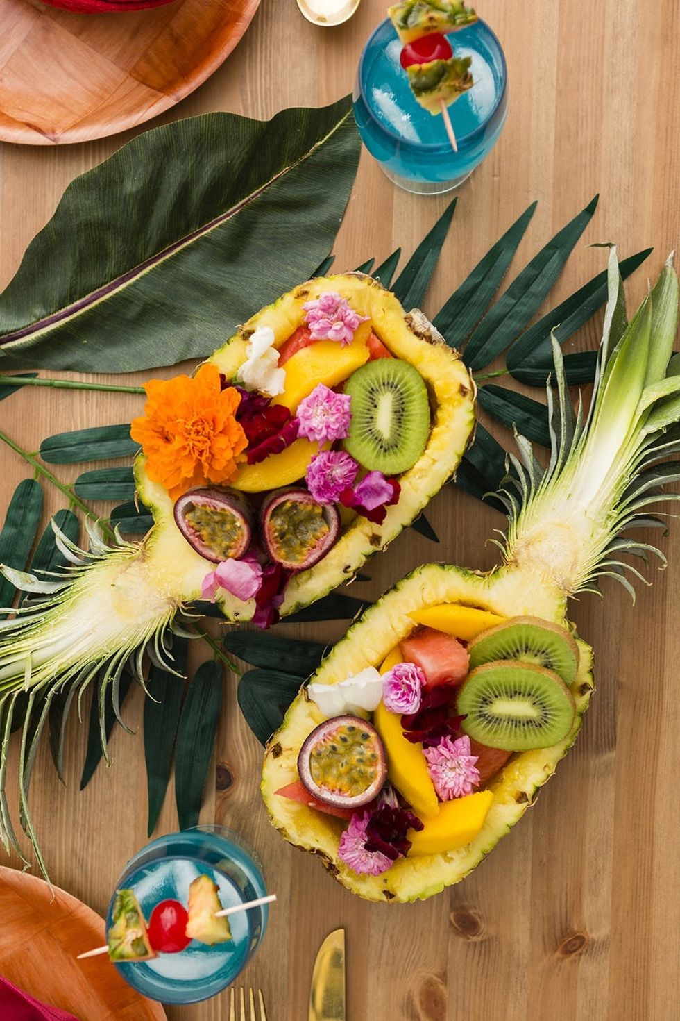 With your extra fruits, make fruity pineapple boats! Food served in pineapples def looks *and* tastes better.