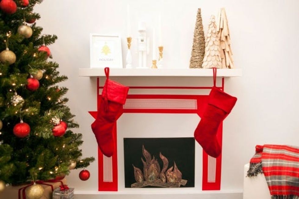 Thirsty? As we mentioned, we’ve got the hot cocoa ready to pour, Elf is playing on the screen, and the holiday music is roaring. Cozy up in front of our washi tape fireplace and hang out for a bit. The chalkboard fire is just begging you to roast some imaginary s’mores.