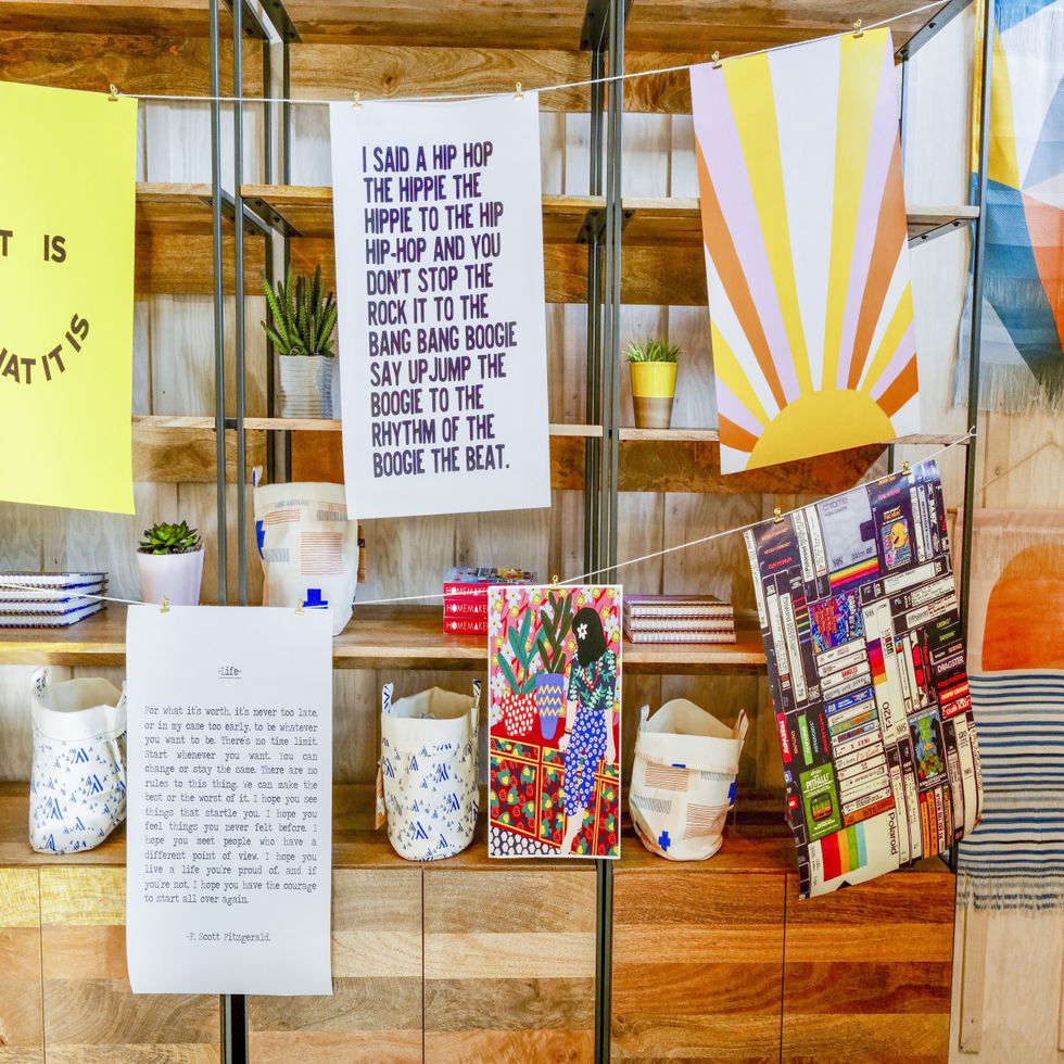 With themes that change every couple of months (this month's theme: School's in Session), you can find colorful, creative and innovative products curated (or created) by Brit and her team, as well as a Make Station where you can sit down to make your own free creative project to take home. In our first rotating collection of goodies from our favorite designers, we're excited to represent our friends from Esselle, ilootpaperie, Wanderwild, Maika, Hooray Socks, and Society6. We're also offering some of our own Brit + Co products, including customizable planners, pins, patches, sticker sheets, DIY kits, books and more.