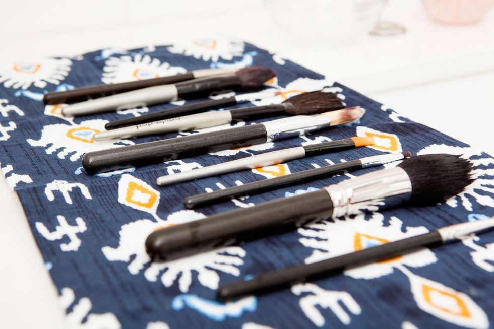Once your brushes are dry, you can store them in a mason jar for easy access, or roll ’em up in a brush organizer.