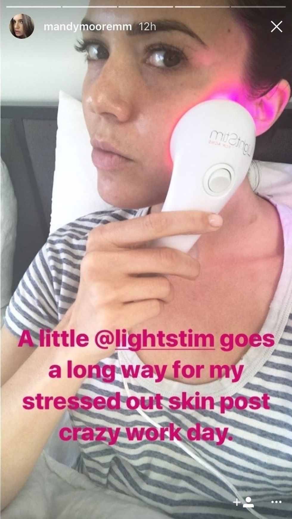 It might be faster than aging the natural way, but that doesn’t mean it’s easy. Seems like that goes for becoming 33 again too. “The hardest part is the removal process,” Moore said. “It’s pretty tricky and it’s really hard on my skin. I have really sensitive skin.” Later in the day, Moore showed a bit of her skin recovery process in the form of light therapy.