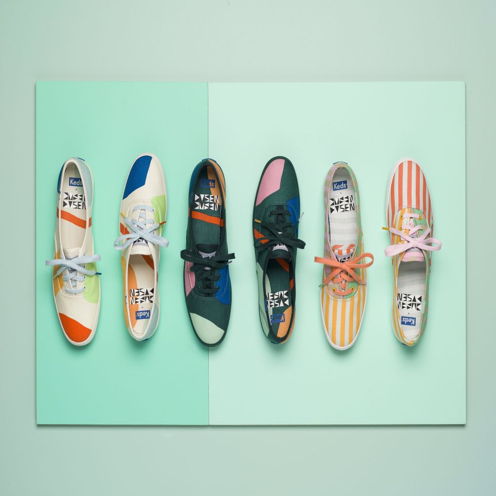 Keds x Dusen Dusen ($70): This iconic footwear brand just partnered with home goods designer Ellen van Dusen to create a funky fresh twist on the classic Champion and it's allllll good, y'all. Featuring three playful patterns and crazy vibrant colors, the collection will give you vacation vibes even when you're stuck at work. "Keds is the first sneaker company to make shoes for women, which I think is so cool," says van Dusen. "I'm happy to be working with a brand that has such forward thinking at its core and has opened the world up for women in a such a novel way."