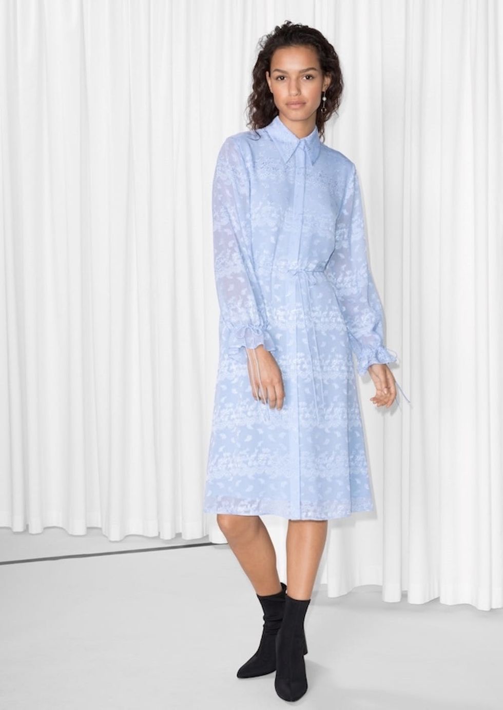 1. & Other Stories Cinched Jacquard Dress ($175): This dress is our blue heaven. Wear it for any of the spring holidays or just to the office to make workwear way more fun.