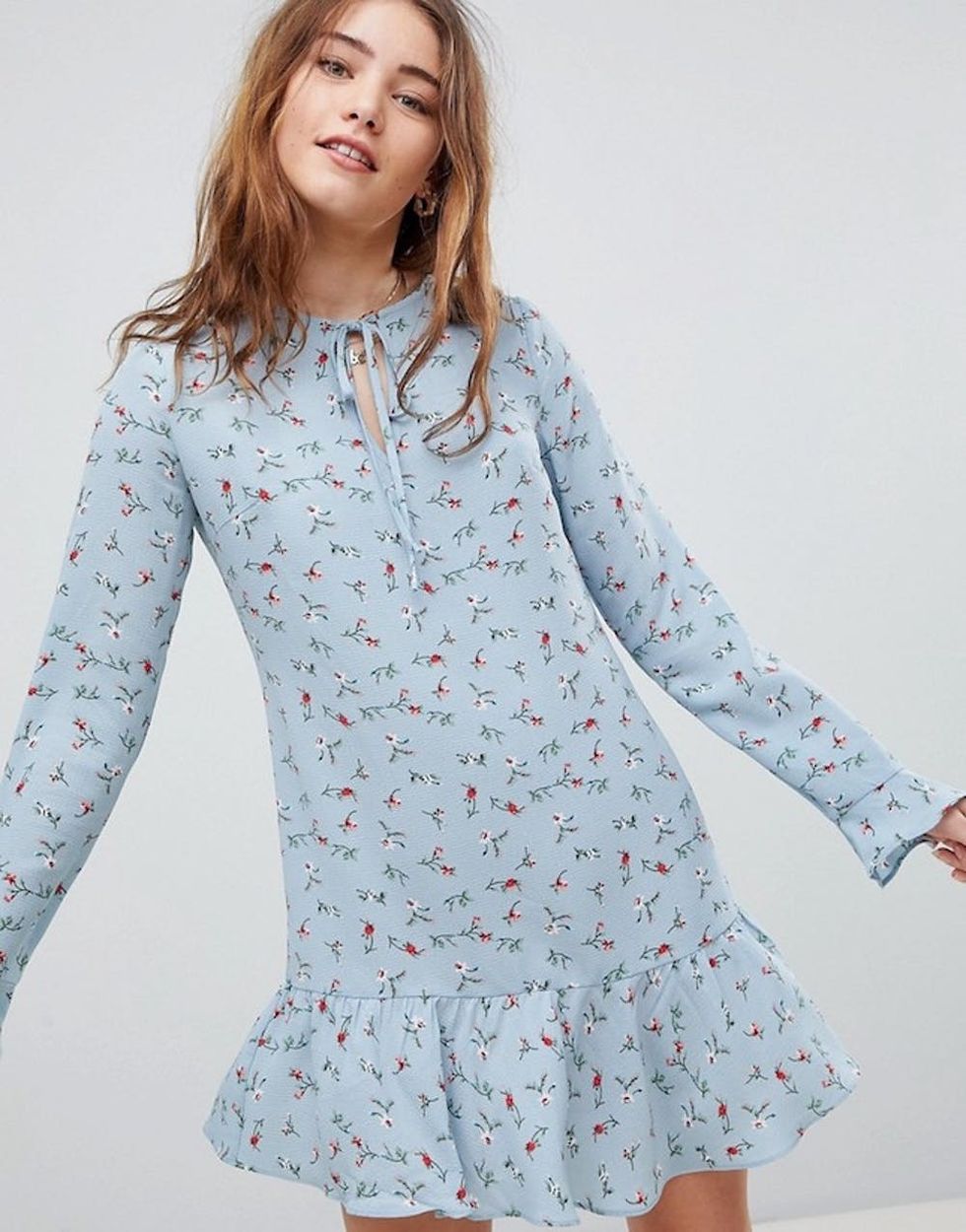 6. Glamorous Swing Dress With Bell Sleeve In Floral Print ($42): Get drop waisted in this baby blue floral frock. Try it dressed up with pretty pumps or rock it with a cropped moto jacket and ankle boots for a little edge.