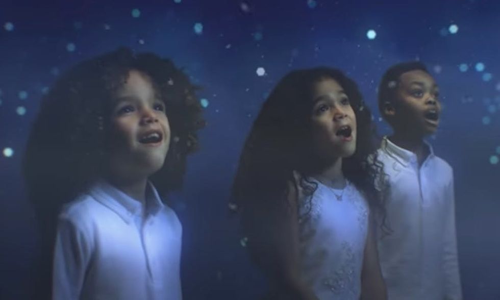 Singing the title track from the new animated feature The Star, Carey embodies the holiday spirit in a long, shimmery silver gown and cape. Adding even more magic to the track are the backup vocals from her six-year-old twins, Monroe and Moroccan. Not only can they be heard singing, “Follow your heart; it’s Christmas,” in the chorus, but they also make a cameo in the movie-montage video, joined by another kid for their big moment.