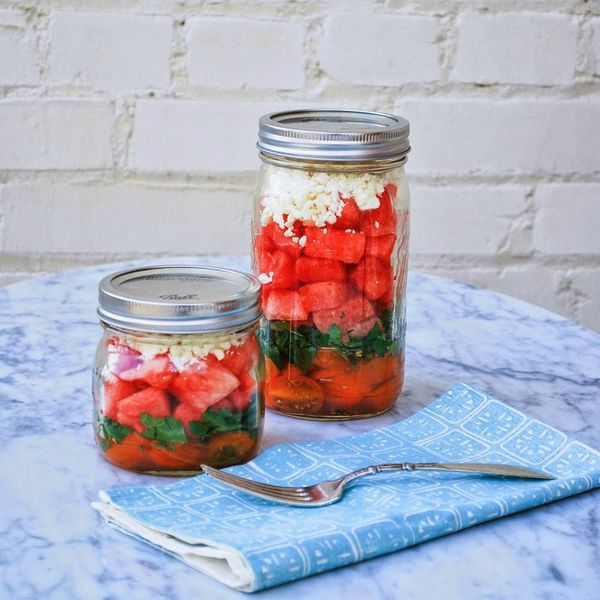 12. Strawberry and Goat Cheese Salad: This delicate spinach and strawberry salad can be made ahead of time just as well as its grain- and legume-based counterparts due to one ingenious trick: a parchment paper “bowl” on top. It keeps the dressing separate until you’re ready to dig in, so you won’t have to endure eating a limp, wilted blend. (via Food and Other Stuff)