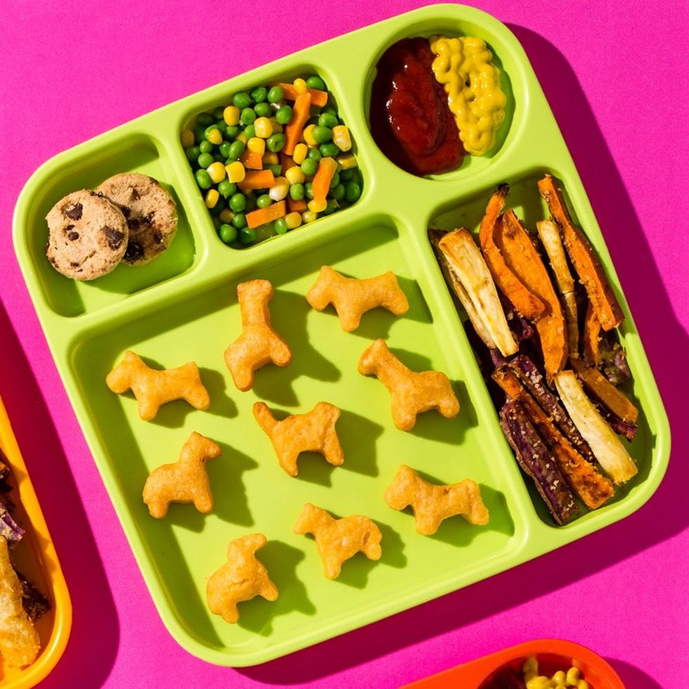 Find a fun tray to house your chickpea animal nuggets and fries. But don’t forget about the side of veggies, condiments and dessert (even though they were totally gross, there was always a dessert). Ahhh… looks like it’s time to queue up that Netflix playlist.