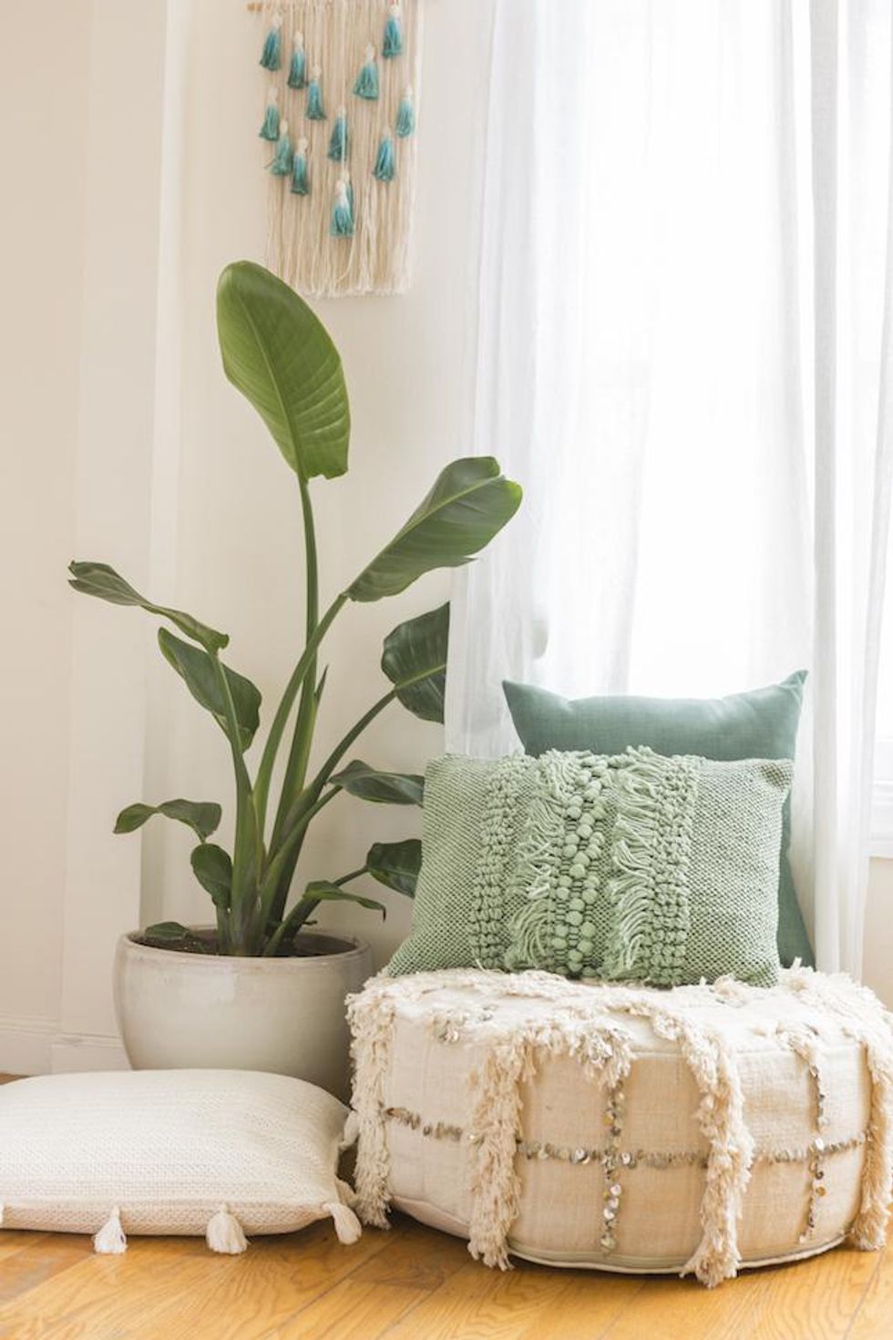 Day or night, finding ways to block out the stress and worry of your day through meditation can help everything from mood to productivity. Whether you're into skincare meditation, a newbie wanting to learn about all the meditation types out there, or need inspiration from a meditation pro to get consistent about your practice, you'll need a dedicated calm and peaceful space to make yourself more comfortable and committed. We spoke with Dora Chan, Yoga Nidra Meditation Teacher and Holistic Stress & Nutrition Coach, and our friends at Wovn Home, for ways to create a space to zen out no matter where you live.