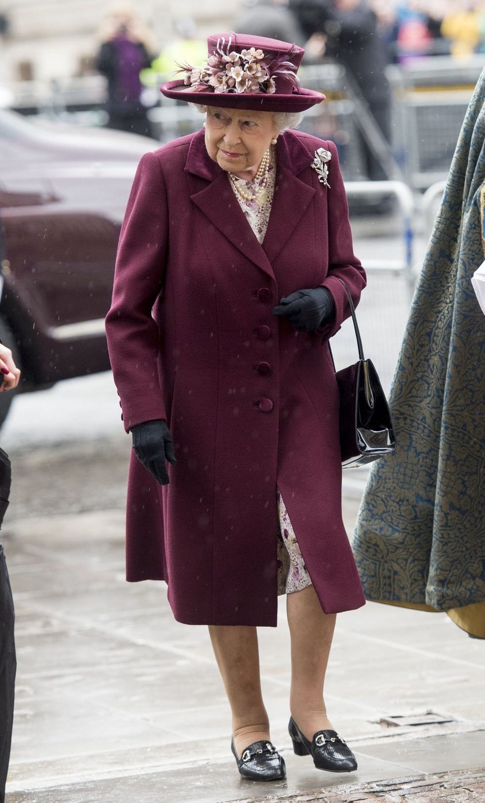 The Queen (who looked rather smart herself in a regal burgundy coat with a matching floral topper, a printed dress, and pearls), presides as head of the Commonwealth, an intergovernmental organization comprised of 53 member states.