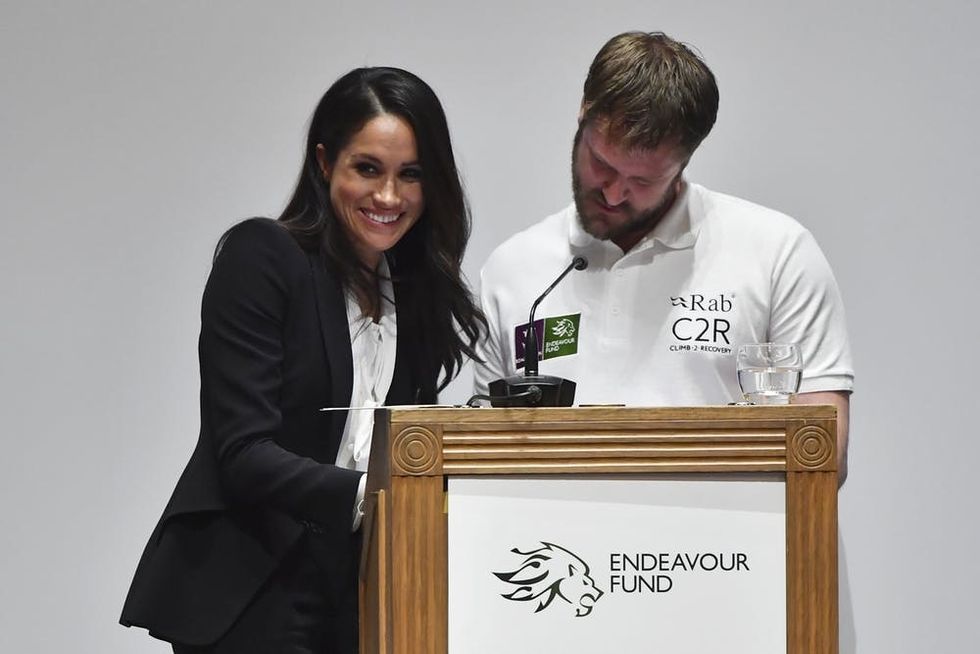 Presenting with former serviceman Neil Heritage, Markle announced the award they were there to give out, then stepped back to let him take over. That’s when things went a little awry.