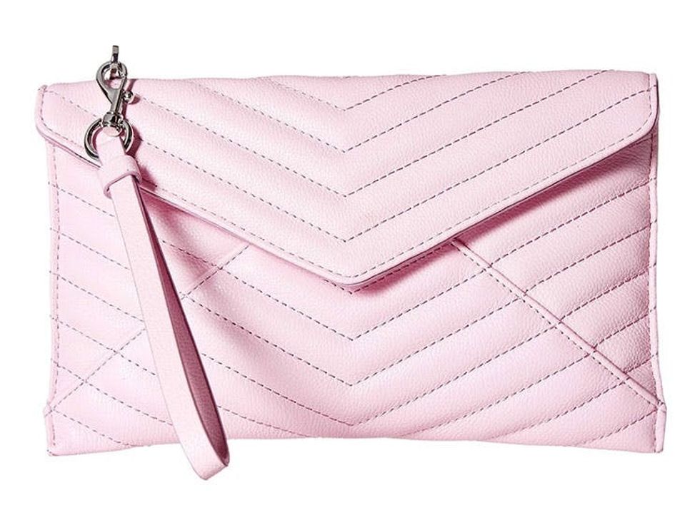 A small evening clutch like this cream and gold Carolina Herrera option offers a fresh twist to the blush Brandon Maxwell ensemble Markle wore at The National Theatre in January. (Photo via Max Mumby/Getty)