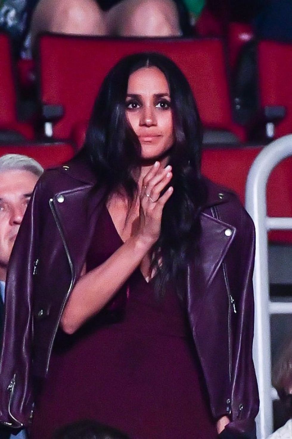 Just a few weeks after publicly declaring their love on the October cover of Vanity Fair, all eyes were on Meghan Markle at her first official public outing with Prince Harry over the weekend. But we can’t stop obsessing over her monochromatic plum ensemble, including that fall-transition-perfect leather jacket.
