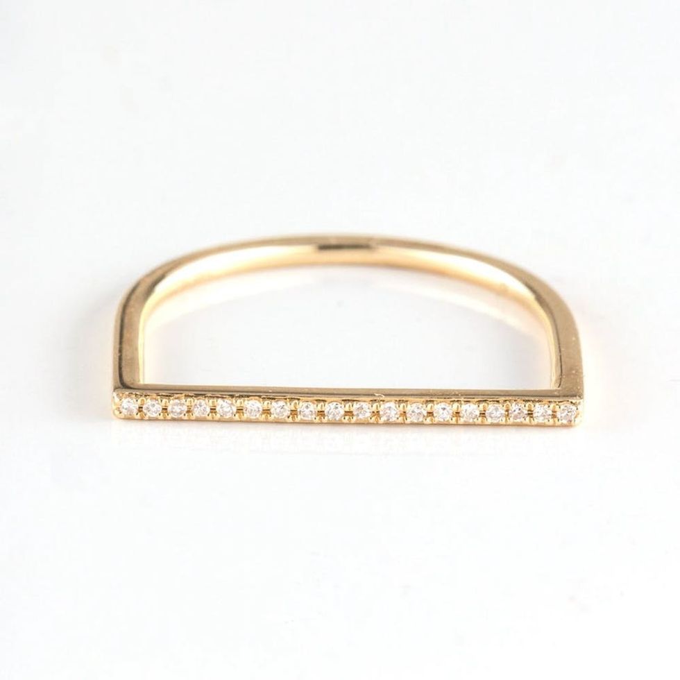The soon-to-be newlywed wore the brand’s Bar Stack Ring in 14-karat yellow gold, which retails for $715 and features pavé diamonds and multiple color choices. Designer Lisette Polny gushed about Markle wearing one of her creations, telling People, “It’s such a simple design. My company is still quite small, so for [Markle] to select me was really quite an honor. I think it says something about her — I don’t think big brand names define her.”