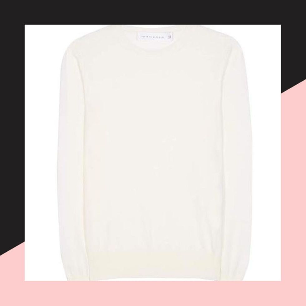 While it’s still a bit on the pricier side for the average gal, a comfy white sweater is a look we can get behind at a myriad of different price points.