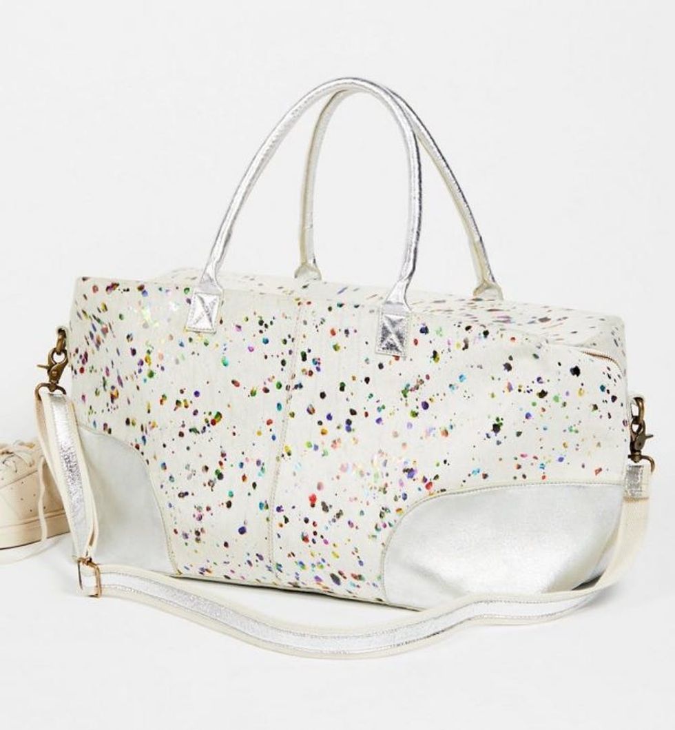 7. The host city of Art Basel loves a good splash, or splatter, of color. With a white-hot background featuring metallic accents like this Free People Rainbow Weekender ($268)? Even better.