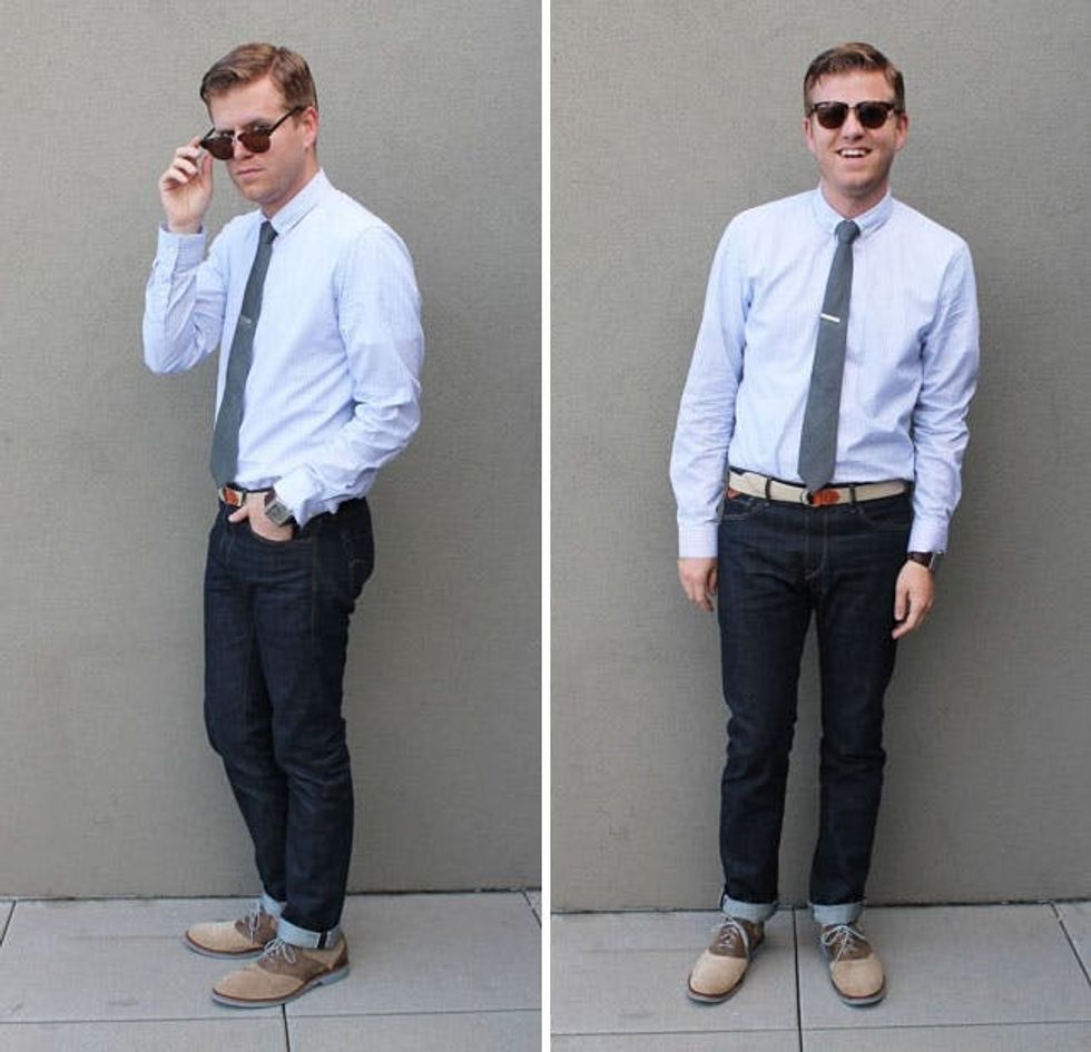Rules: Never underestimate the power of the tie clip. This is an easy way to add a dash of old school class to any outfit. For shoes, these oxford bucks are classic. One cuff for this one.