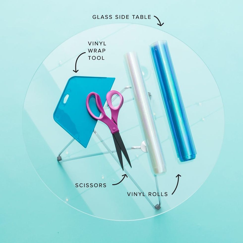 Mermaids, unite! Time to bring some waves into the bedroom with this super simple DIY. To transform your bedside table into an under-the-sea dream, all you need is a glass table top and some colored vinyl. Let’s do this.