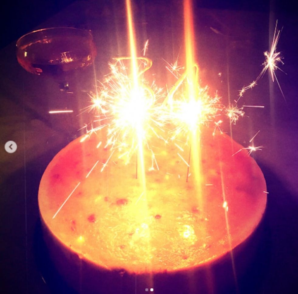 Her birthday cake looked no less spectacular, with two brightly lit sparklers atop a spongey base that had us all aglow.