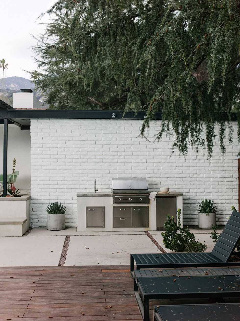 Let the al fresco season begin! This outdoor kitchen offers so many benefits: it moves the cooking outdoors in the heat of summer; keeps the cook outside mingling with guests and not missing out on the action, and encourages a season or more of dining outdoors in nature, all wins!