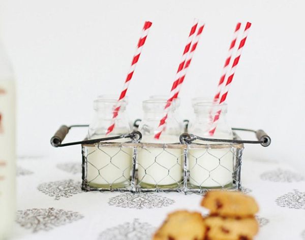 11. Chocolate Chip Cookies, Red Polka Dot Straws, and Milk These red and white polka dot straws make this “Cookies for Santa” display. These straws add a festive flair to any glass or bottle of milk! (via Tartelette)