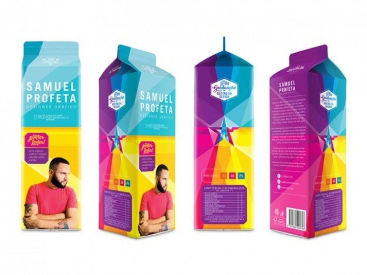 A Brazilian graphic designer named Samuel Profeta created this colorful and unique CV that features four sides and a sloping lid, just like a classic milk carton. Each of the four sides represent a different theme. On one side, the designer’s information is displayed as the name of the product. On another, his experience and qualifications are listed. There’s even a side designed to look like a nutritional label, showcasing his LinkedIn recommendations. It’s an unusual approach to displaying your talents, but it does showcase out-of-the-box thinking — literally.