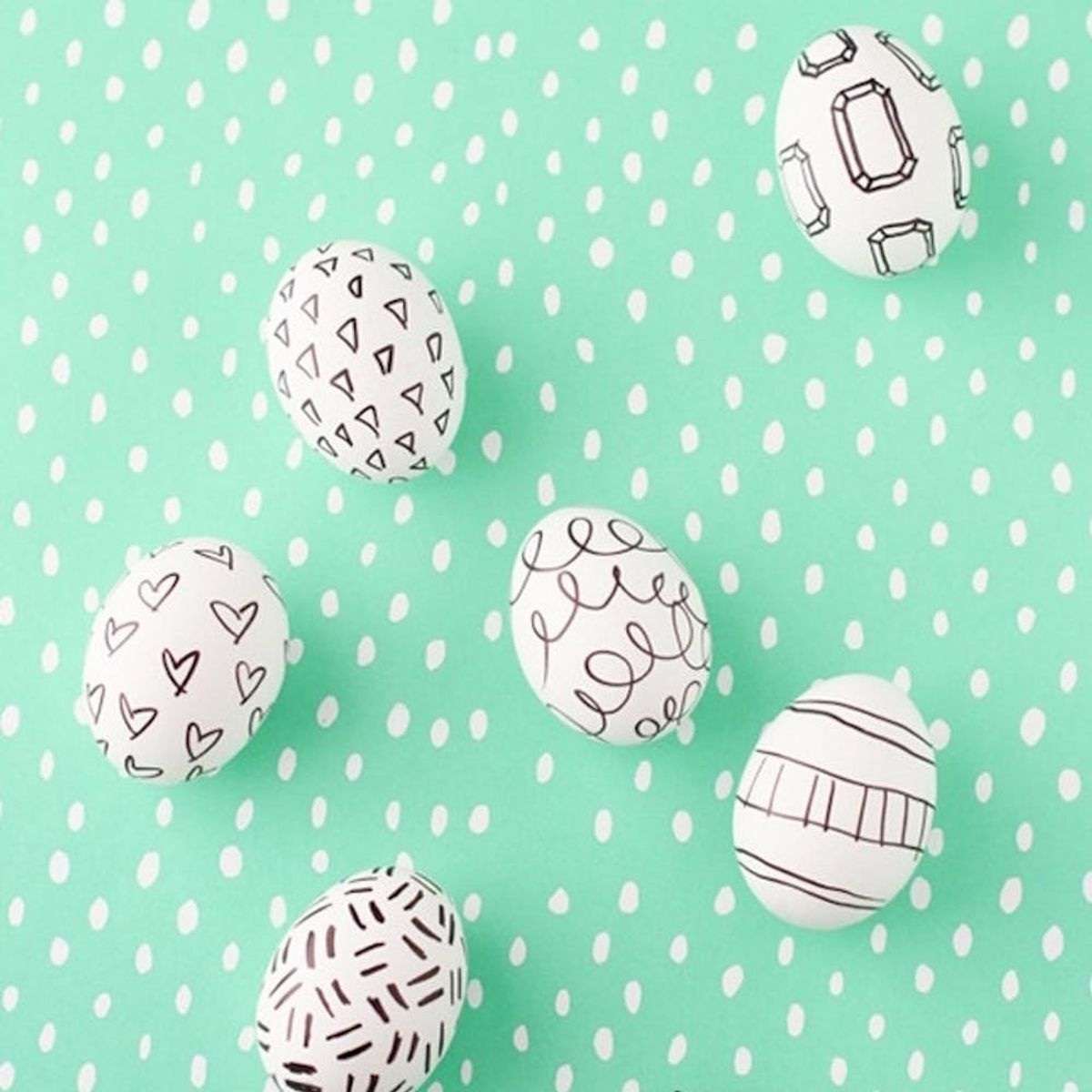 Make those non-toxic markers your BFF’s, and create some patterns with colorful sharpies. While the black-and-white option above looks great, nothing can beat these bright Easter colors and geometric shapes. (via Hello Lidy)