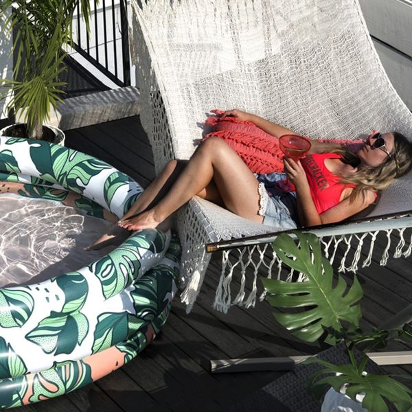 At 5.5 feet wide, the Minnidip is the perfect “patio size,” ideal for two to three adults. It’s made from premium non-toxic vinyl, and you can even use a hairdryer set to “cool” to inflate it. (So clutch.) It comes in three totally ‘gram-worthy patterns: the Just Add Water(melon), the Donut Forget Your Sunnies, and That’s Banana(leave)s.