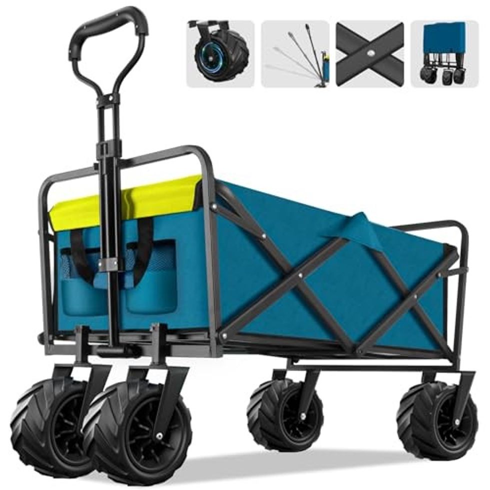 Whether you're planning a day at the park, beach, or a camping trip, don't go anywhere without this epic collapsible wagon. Designed to carry all of your kit and even your kid, this wagon has plenty of storage. This will save you from endless journeys to and from the car.