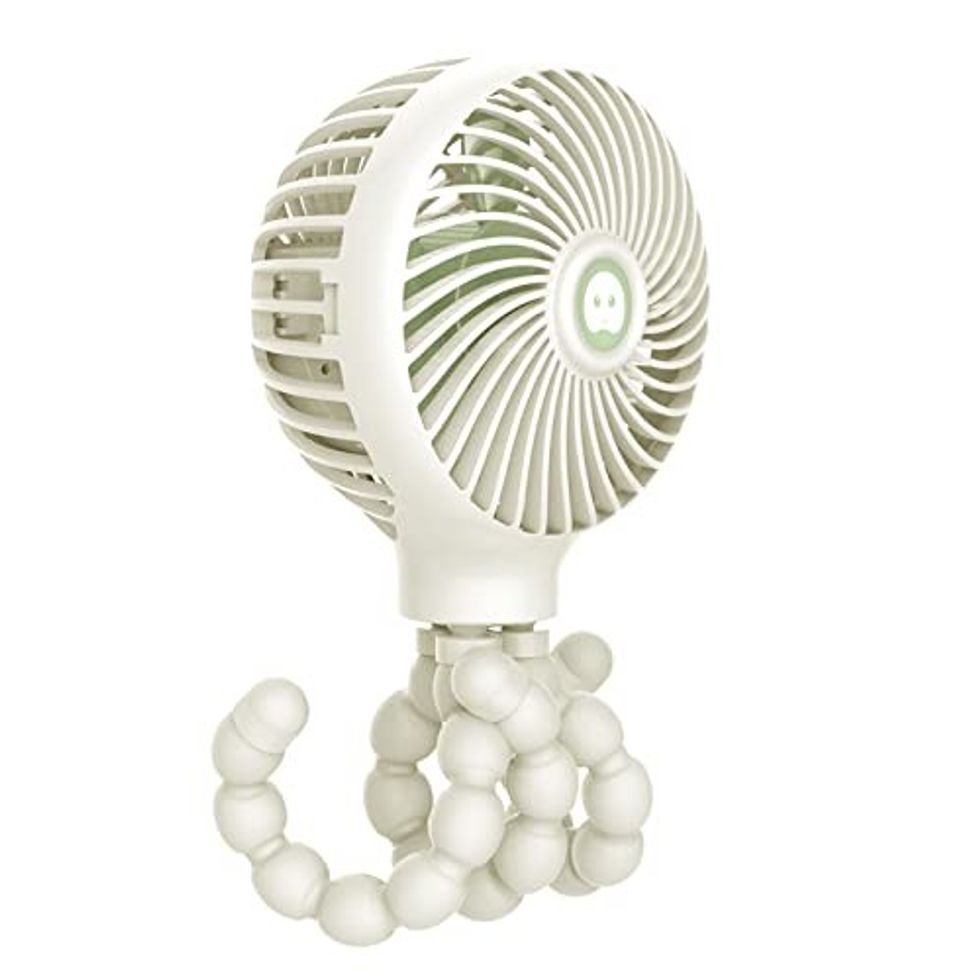Don't melt needlessly in the heat. When it's hot and sticky, a portable fan will give you a cooling breeze whenever you need it. This bendable fan can be wrapped around your stroller, in the car, or even around the house. It's rechargable and has three different wind speeds for when you want to take things up a notch.