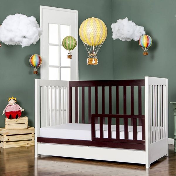 6. Dream on Me Milano 5-in-1 Convertible Crib ($200): With structured lines and a bold color contrast, this crib brings an unexpected pop of design to any modern nursery. Another great bonus of this piece: It can stay with your child from daycare through elementary school, as it converts into a toddler bed, a daybed and two versions of a youth bed.