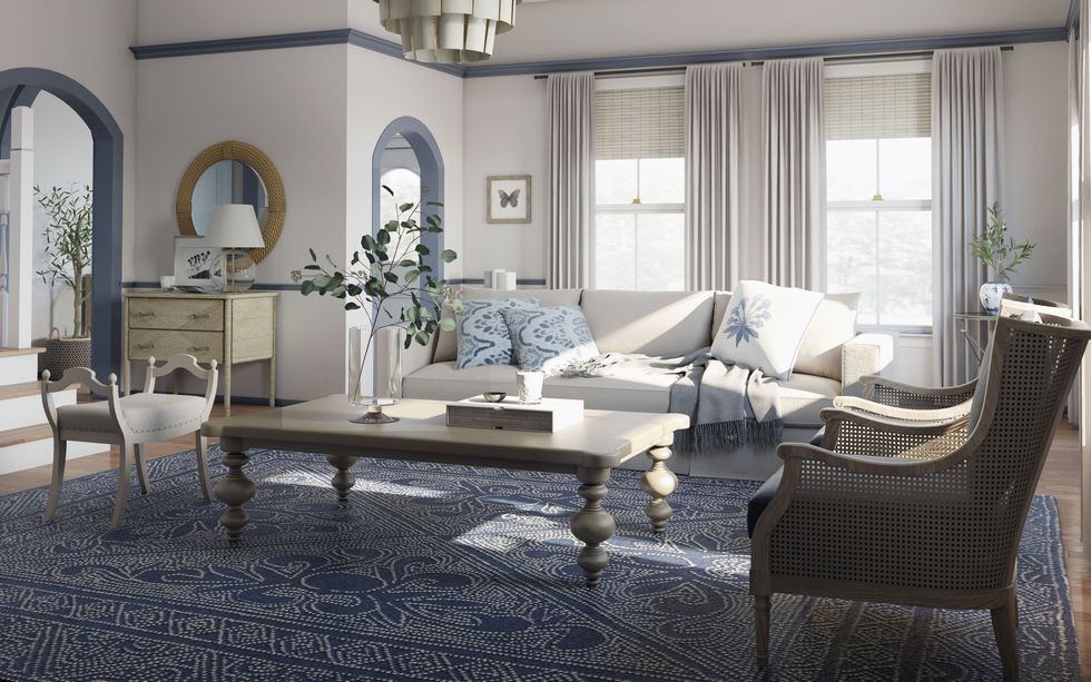 Rory: The room of Rory packs effort and ease into every inch of the space, while reflecting her east coast taste. Just consider the walls, appropriately painted a "London Fog" color or the rug with coastal vibes covering the floor. And since the star loves her movie nights, it's designed with ample (calming, neutral-toned) seating to kick back in with her mother.