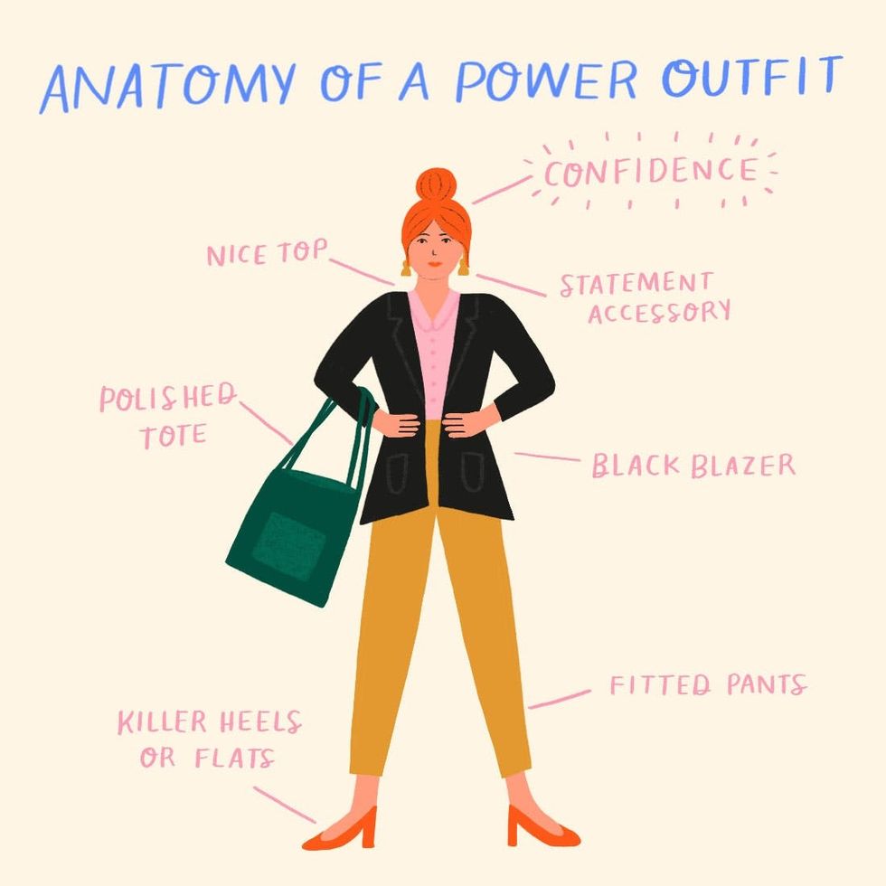 Mix high and low, find your own look, and don't be afraid to add a pop of color. Invest in some statement pieces. If you have to question whether something is appropriate to wear to work, then it probably isn't. Most importantly, how you feel will reflect how you look and vice versa, so add an extra layer of confidence — it goes with everything.