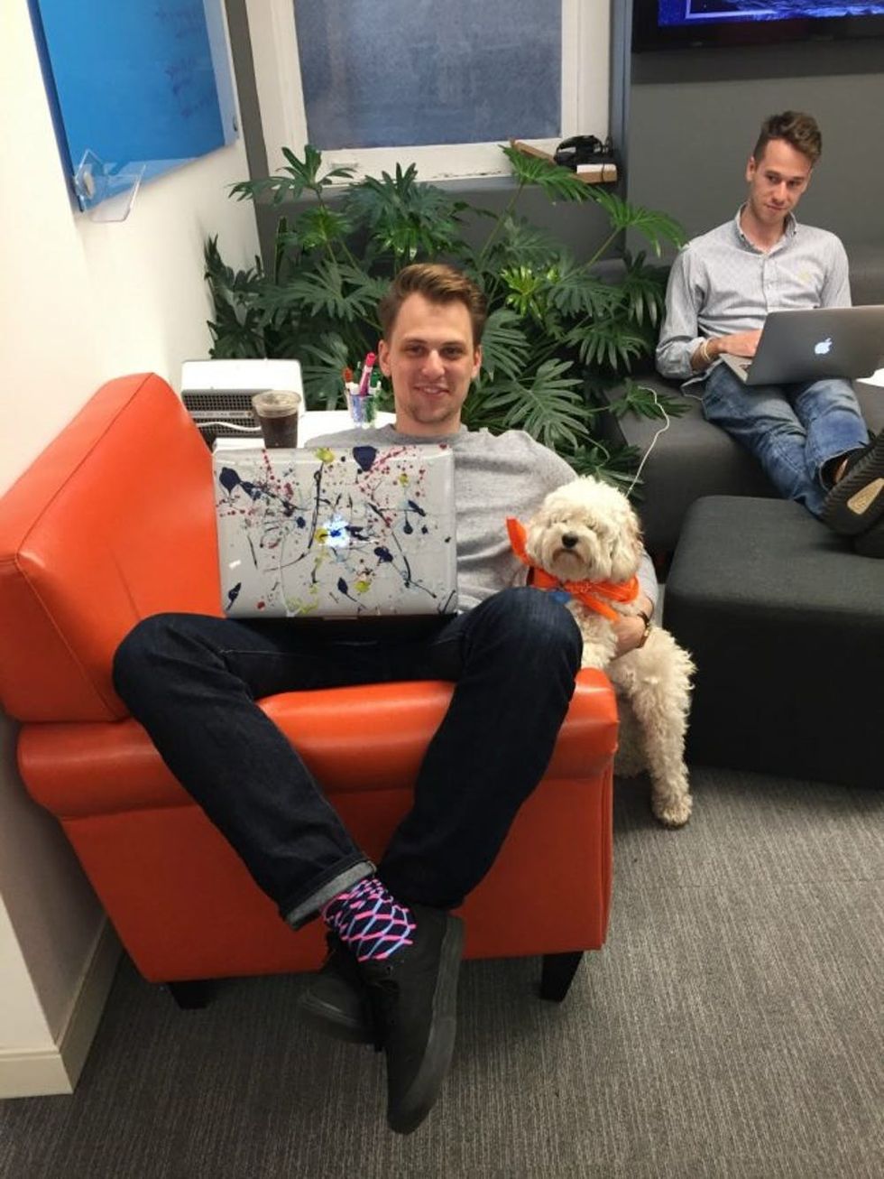 5. Bitly: All of Bitly’s offices in New York, San Francisco, and Denver are dog-friendly, with dog food, tasty treats, and toys aplenty. Some of the usual suspects in the New York office include CEO Mark Josephson’s Bo and his friends Mable, George, Lexi, Pint, and Bosin. (Photo via Bitly)