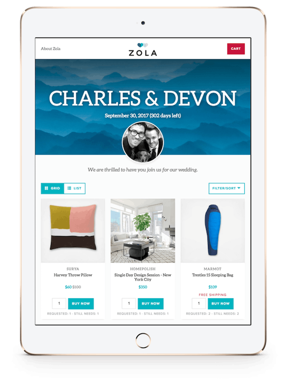 3. Provide a personalized experience. What resonates with Zola users is the personalized experience they want is in one place, for free. In 2013, when Ma found herself buying countless wedding presents from department store registries, she was shocked by how terrible the commerce experience was for the shopper. Nakaguchi, who was in charge of user experience at Gilt Groupe, lamented the same pains of traditional wedding registries. “Our original hypothesis was that millennial couples didn’t want many physical gifts anymore, that they preferred experiences to share with their significant other, but actually what we’ve found is that couples today want to have everything. They want cool experiences, home upgrades, and funds for their future,” says Ma. Zola was born out of the need to cover all wedding planning needs.