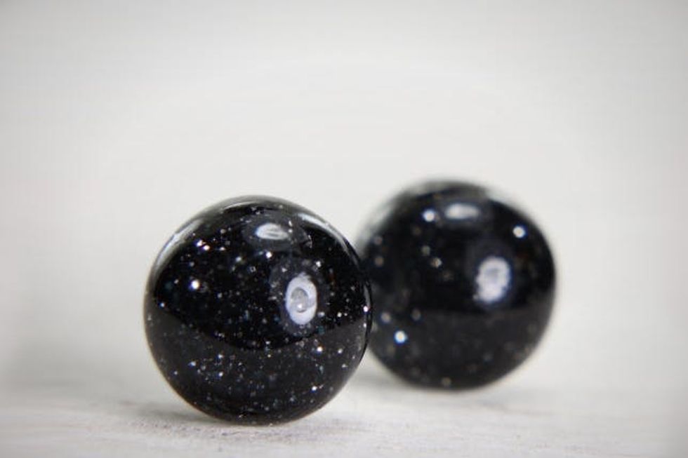 19. Globe earrings in black sparkles ($20): How amazing would it be if moon rocks were this dazzling?