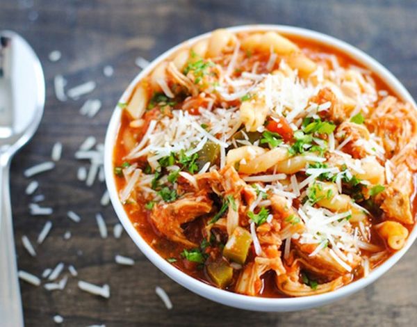 If you are craving chicken enchiladas, but want to avoid unnecessary steps and fuss, this slow cooker recipe is perfect for you! After the crock pot is done doing its thing, you will have eight full servings of chicken enchilada soup to eat or save for later. Let's hear it for easy crock pot meals! (via Diethood)