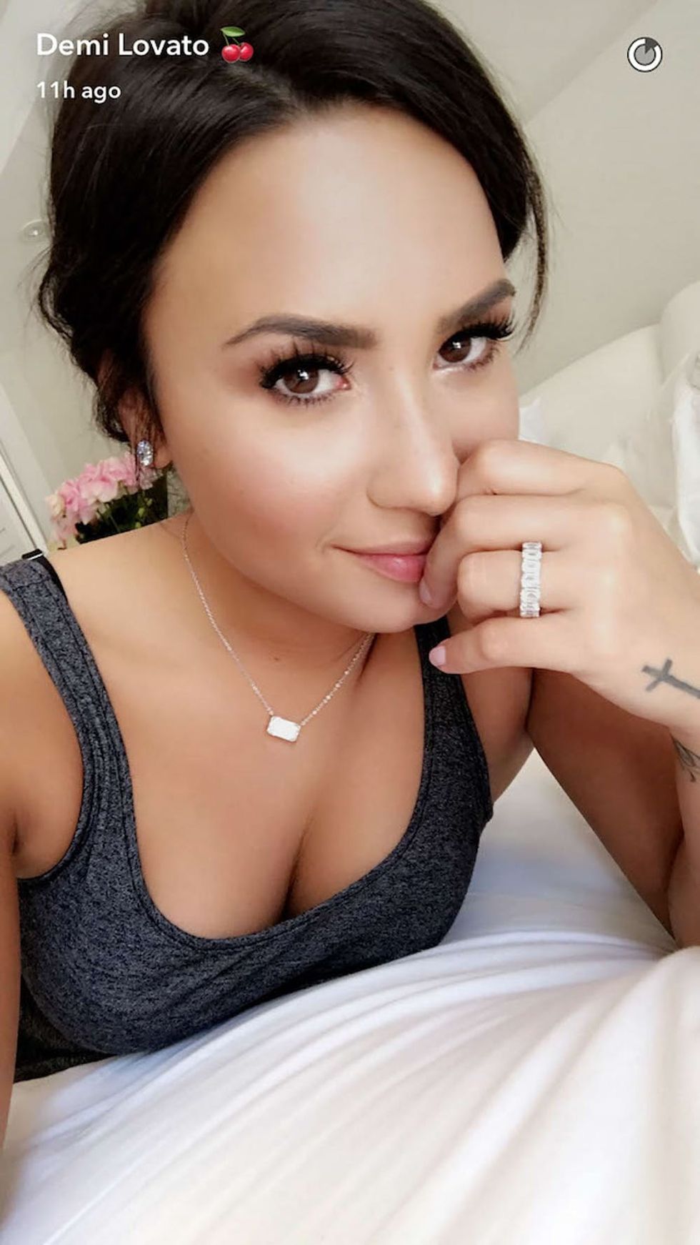 4. Demi Lovato’s diamonds are sparking engagement rumors. Lovato and new BF, MMA fighter Guilherme “Bomba” Vasconcelos, spent some super adorbs time in Disneyland for Vasconcelos’ birthday, and while their PDA snaps were to be expected, the solo selfie Lovato Snapchatted is the one we’re most curious about! In the shot, Lovato is wearing a diamond band on *that* finger. We know that isn’t necessarily a big deal, but it DOES make one curious! (Photo via Demi Lovato/Snapchat)