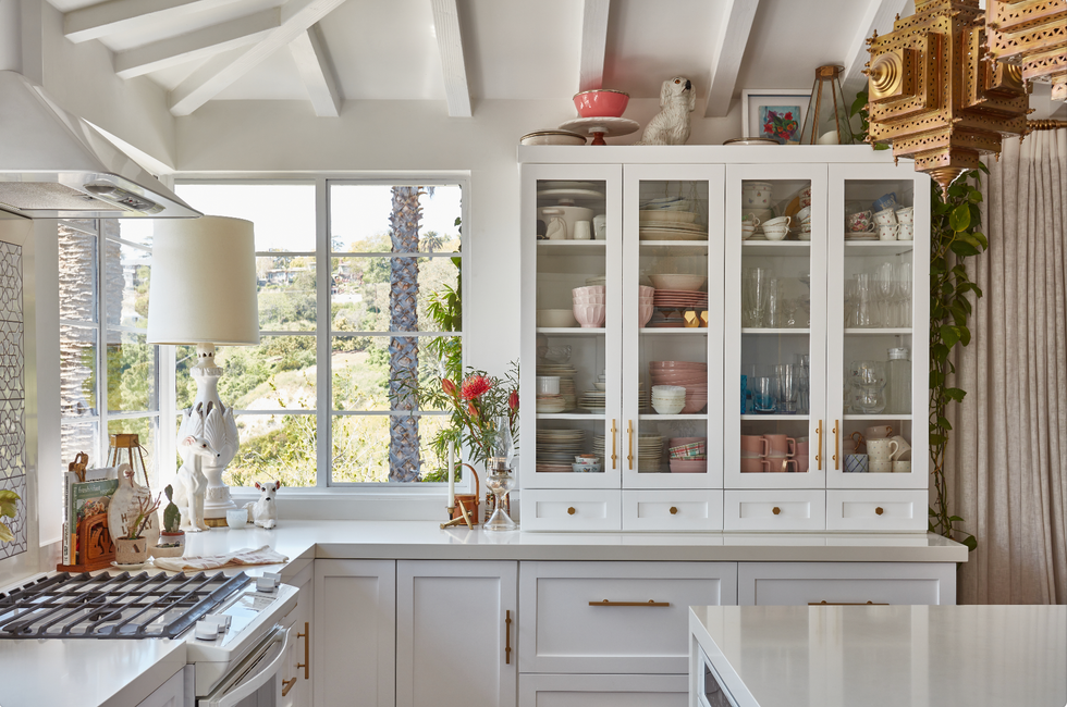 When Union of Art designer Tamarra Younis moved into a small 1940s bungalow in the Mount Washington neighborhood of Los Angeles, she didn’t want the square footage to hold her back. “I wanted to open up the space, let in the light and embrace the LA indoor/outdoor living,” she says. Her first project was to turn three dark little rooms that served as the living, kitchen, and dining rooms and gut them into one bright and happy space. She lifted the ceiling, added in some beam details, and added three sets of french doors to showcase the canyon views, creating a magical oasis and escape from the hustle and bustle of LA.