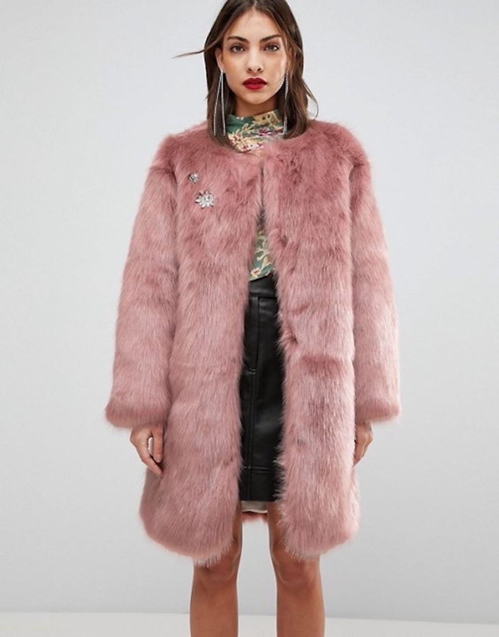 As it turns out, shoppers begin searching the term “winter coat” in the first week of August. Yes, we said August. While the dog days of summer are still scorching away in most places, many savvy (or overzealous, depending on how you look at it) shoppers are already planning their cold-weather wardrobes. Those searches steadily increase until the second week of November, however, with the average shopper looking at a coat three times before buying it. So if you haven’t found your perfect pick yet, you’re not alone. Brit + Co Pick: Mango Oversized Faux Fur Coat ($143)