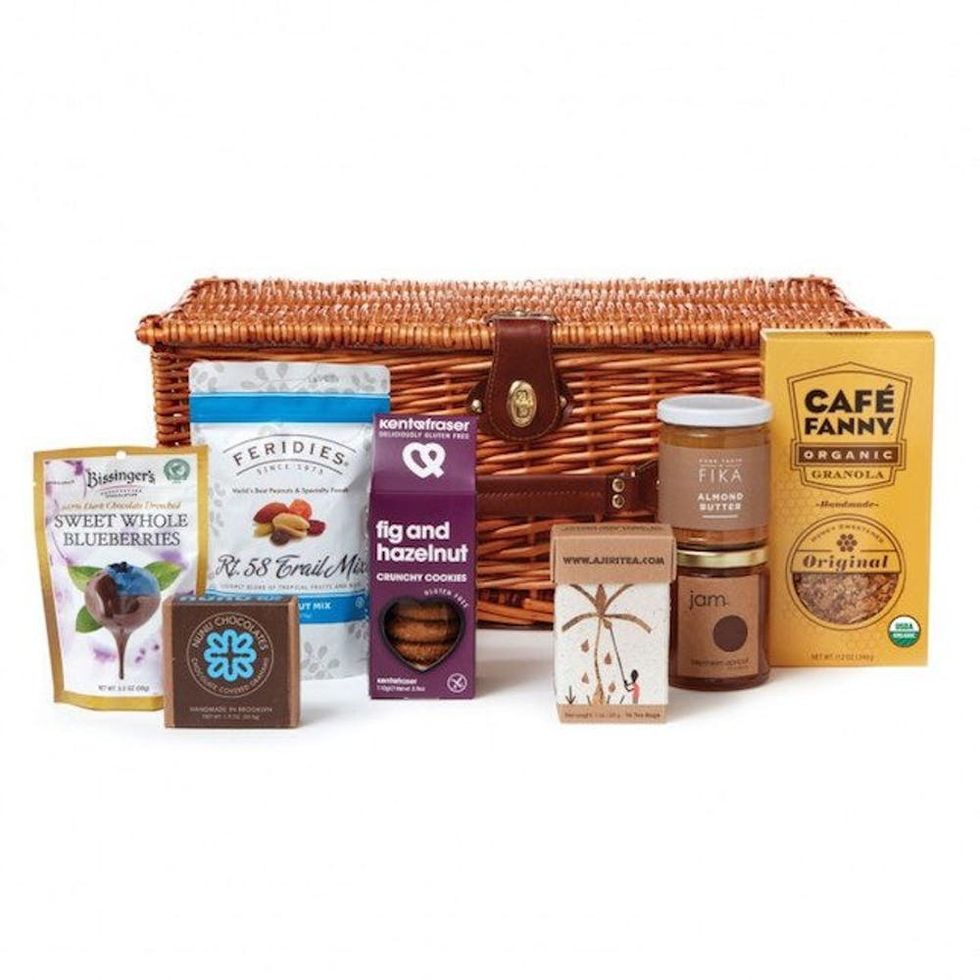 Give the ultimate *glowing* gift with an on-trend, minimalist basket. Featuring a jersey nightgown, cozy cashmere socks, and relaxing essentials, like a rose quartz geode and Masala chai tea, this gift is perfect for any mom who likes to stay super Zen. Bonus: HATCH will donate a portion of the proceeds to Alliance of Moms!