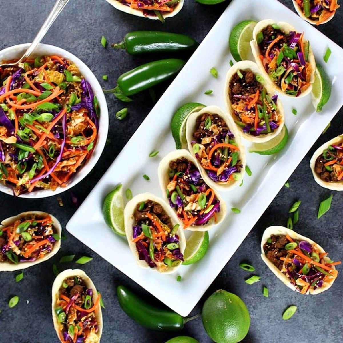 Korean Mini Taco Boats With Spicy Asian Slaw