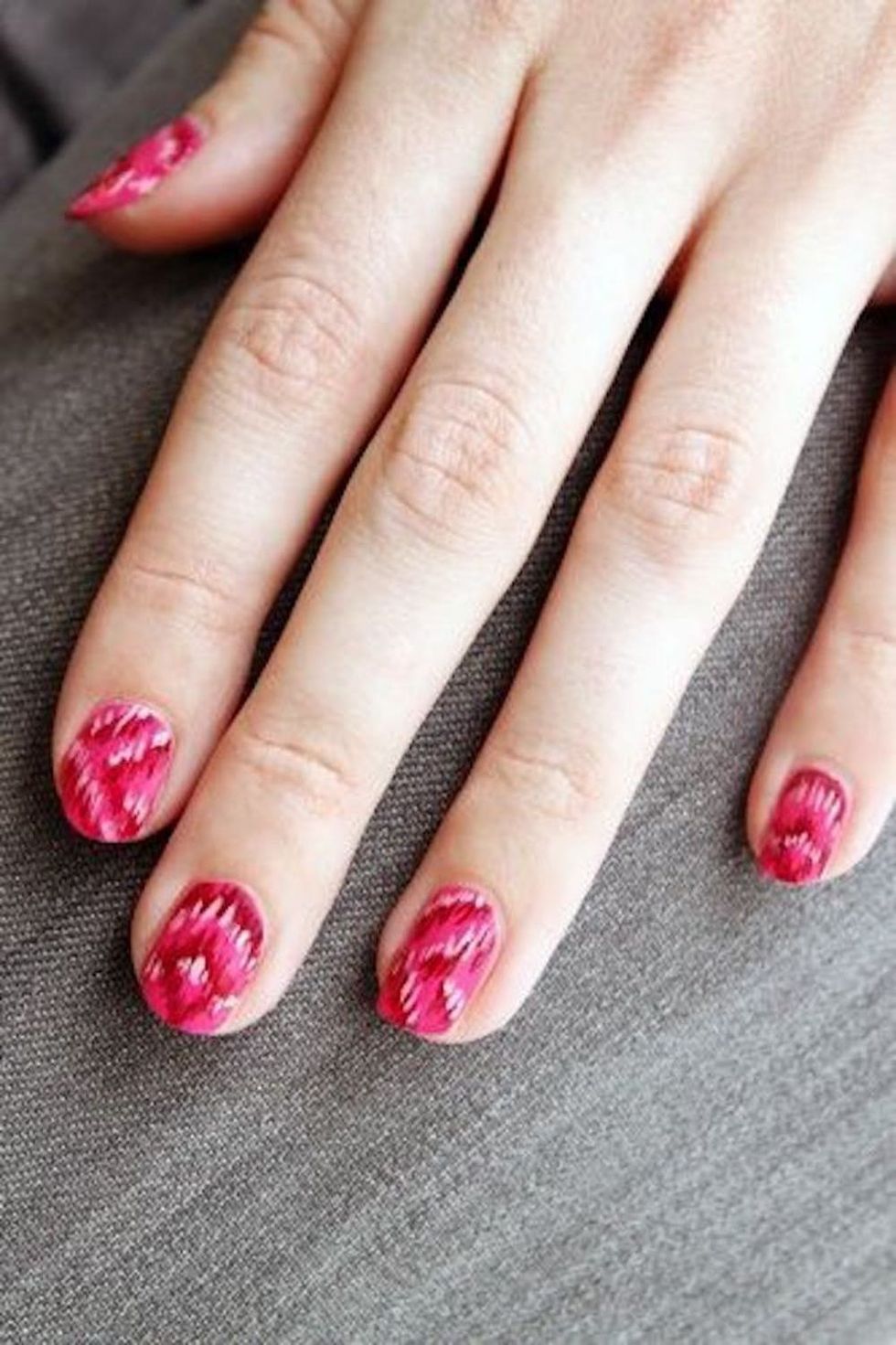 We dig a horizontal stripe mani, and the pink-and-red color combo is the clincher. (Photo via Paint-box)