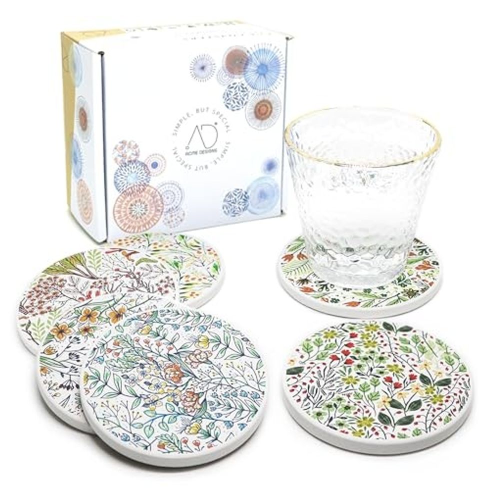 Pottery flattering and fitting accent for the cottagecore vibe, making these botanical coasters a thoughtfully styled choice. The ceramic absorbs any moisture, and the cork backing keeps them steady and scratch-free.