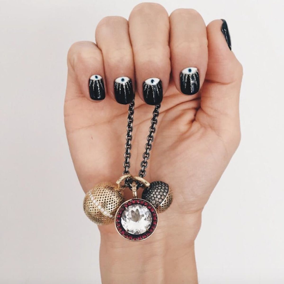 12. Black Evil Eye Half Moon + Silver Accent: Note to self: When you happen upon a manicure this perfect, you wear it— no questions asked. Keep this in mind for Halloween 2017.