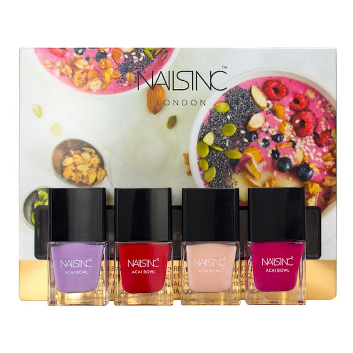 Nails Inc. has thrown a bunch of our favorite healthy stuff — chia, moringa, cacao, goji, and açaí of course —into the formula for their latest launch. The Açaí Bowl ($25) collection isn’t only inspired by the nutrients; the colors also reflect it.