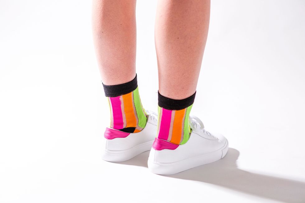 From left to right: ASOS Design Sheer Neon Stripe Socks ($7), Hysteria by Happy Socks Emma Ankle Sock ($18)